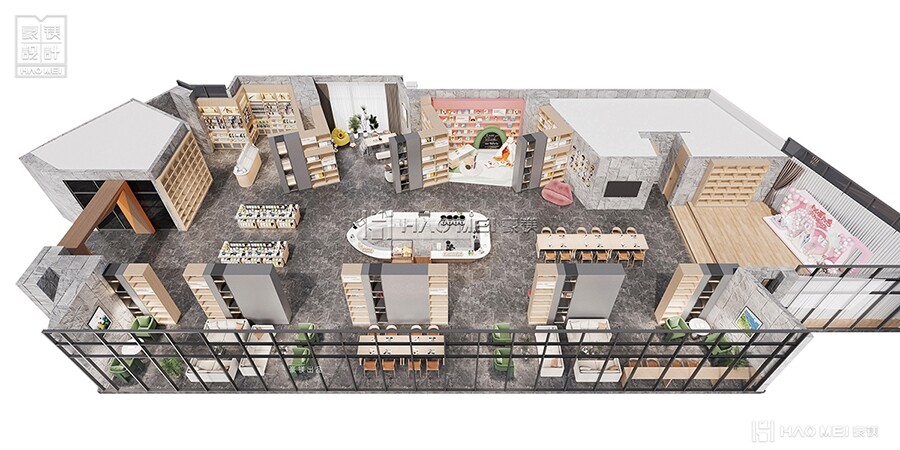 爱情岛书店二店的核心竞争力,在于其旗帜鲜明且贯彻始终的主题性。豪镁的设计团队深谙,一个成功的主题书店,不应止于表面的符号堆砌,而应构建一个完整、自洽的空间叙事。本次设计将“爱情”这一抽象情感,物化为一系列可触可感的场景与体验。