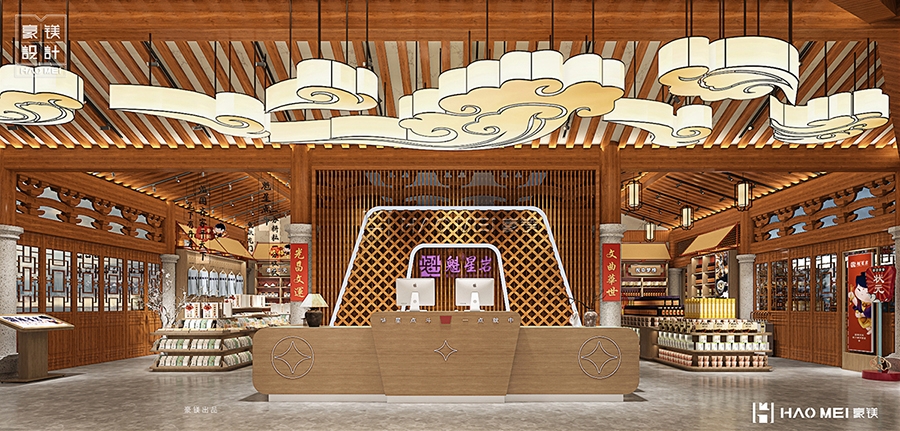 项目首层(1F)的平面规划,本质上是对“文化服务+内容体验+消费转化”链条的拆解重组。入口处的咨询服务台与游客中心构成第一触点,承担信息导览、行程规划的基础功能,但设计上并未停留在“问询窗口”的工具属性——通过融入书院主题的纹样细节(如屋檐线条的抽象化运用、标识系统的书法字体转化),让基础服务成为文化感知的前置铺垫。