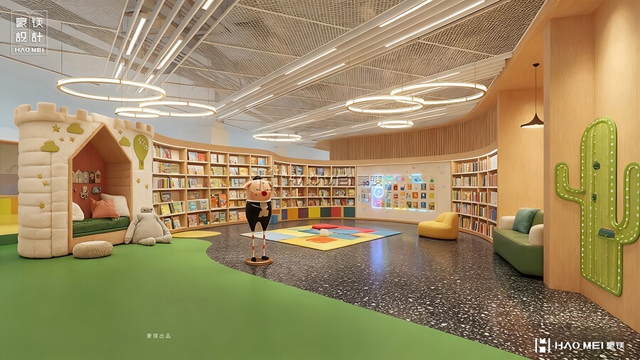 儿童阅览与活动区: 设计色彩明快、家具尺度适宜、安全环保的独立区域,包含绘本区、亲子阅读角、活动教室,培养儿童早期阅读兴趣。