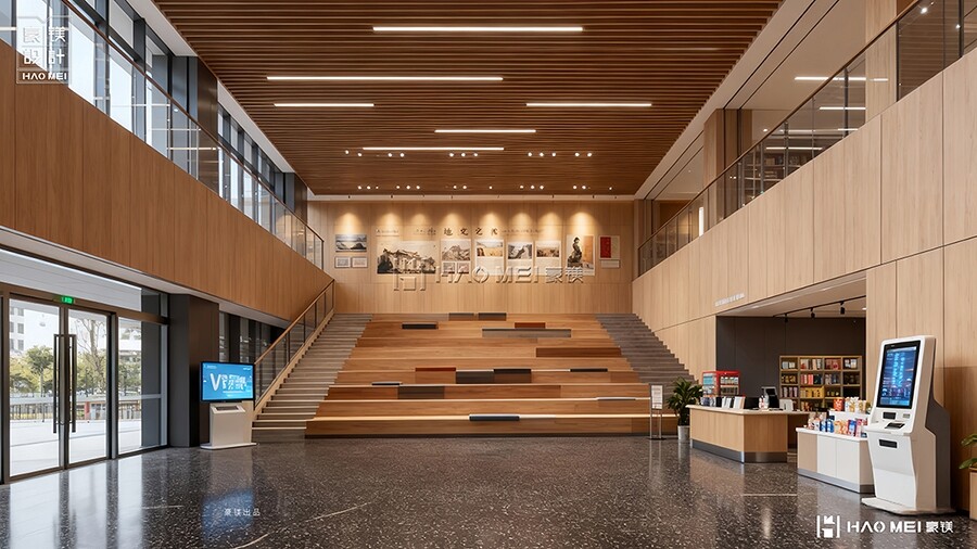 在信息爆炸的时代,图书馆早已超越了传统的藏书与借阅功能,演变为一个集阅读学习、知识交流、文化体验与社区互动于一体的复合型公共空间。一座5000平方米的图书馆,规模适中,潜力巨大,其设计核心在于如何通过科学规划、人性化关怀与美学表达,打造一个既能沉静心灵、启迪智慧,又能激发创意、促进协作的现代知识殿堂。豪镁设计,深耕空间规划多年,将以专业视角,为您解析五千方奥普图书馆的设计之道。