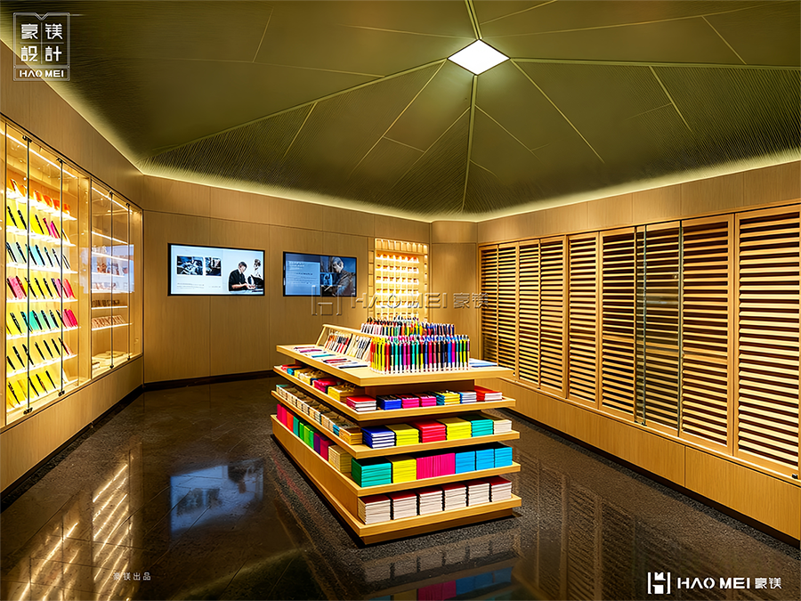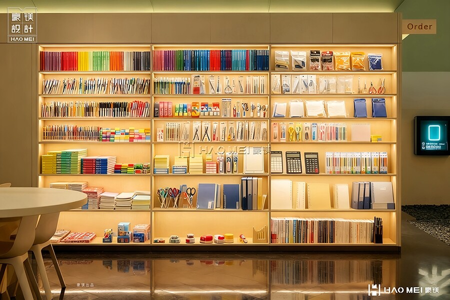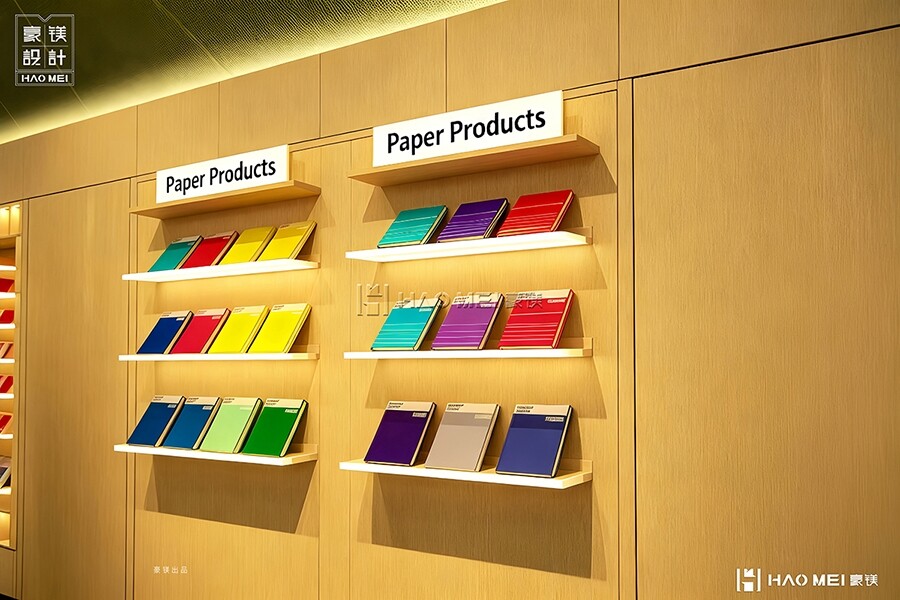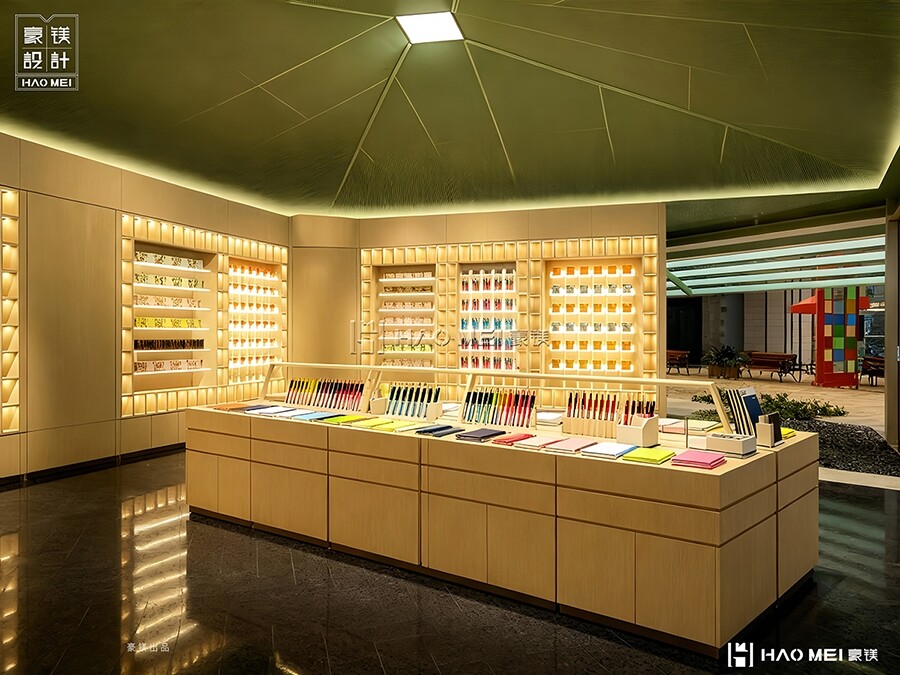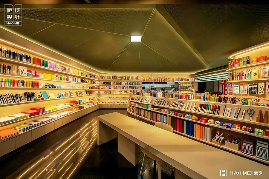 在消费升级的背景下,文具店已从单纯的功能性购物场所转变为集购物、体验与社交为一体的复合空间。豪镁设计团队通过多欣文具店的全案设计,成功打造了一个兼具美学价值与商业价值的文创零售空间。本文将从空间布局、陈列系统、照明设计、品牌体验及材质选择五个维度,深入解析现代文具店的设计要点。