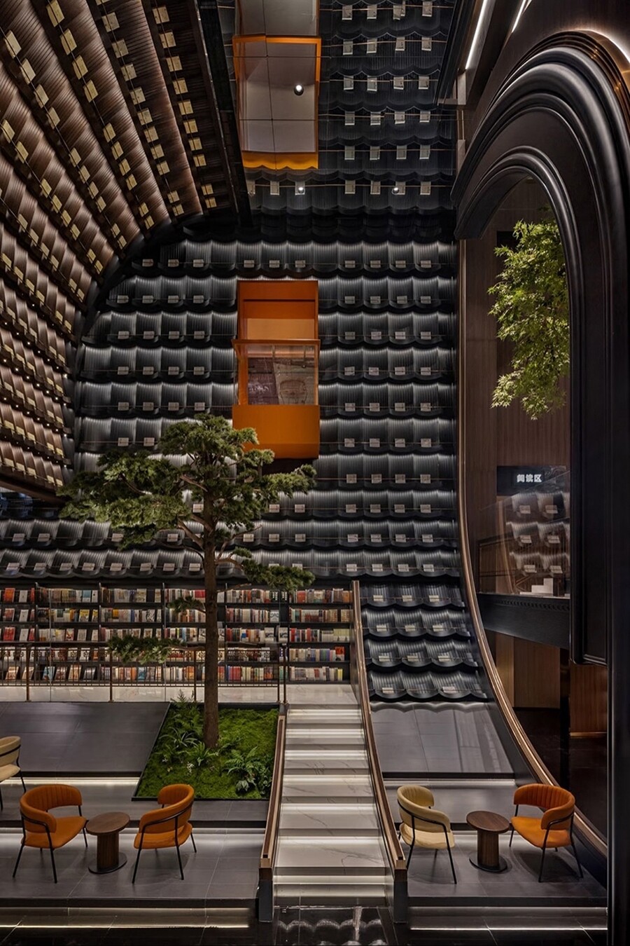 向前行走,拱形门洞依次展开(图5、图9、图10),仿佛穿越一道道历史的门廊。它们源自当地民居瓦片层叠的灵感,以现代材质重新演绎,形成视觉与精神的双重探索路径。读者至此,已不自觉放慢脚步——空间开始说话,它告诉你:从这里开始,你即将步入一个不同于寻常书店的场域。