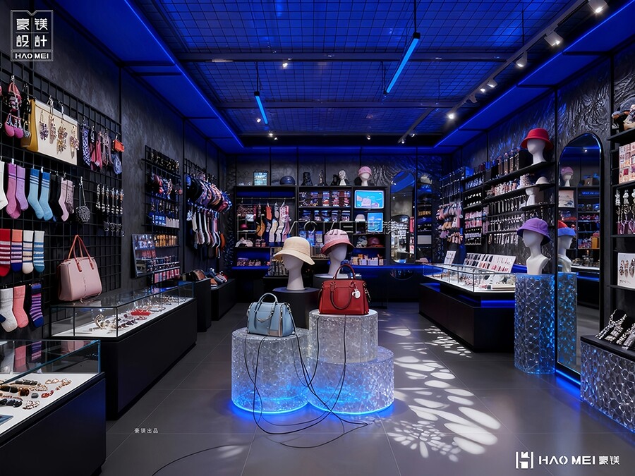 豪镁在设计中发现,Z世代消费者偏好“淘宝式”探索体验。因此,我们通过货架错层设计、场景化小景(如弧形屏幕动漫形象展示)及多点照明,引导顾客自然流动,在有限空间内延长停留时间,激发探索欲。