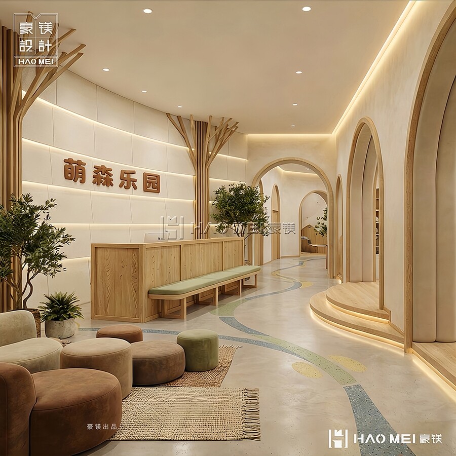 在亲子空间设计的赛道上,豪镁设计始终相信:好的设计不是冰冷的堆砌,而是用自然肌理与人文温度编织的“成长容器”。近期落成的“萌森乐园”项目,正是我们以“自然共生·亲子共融”为核心,为当代家庭打造的沉浸式成长场域。