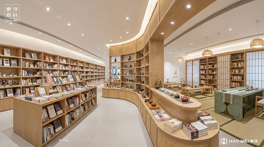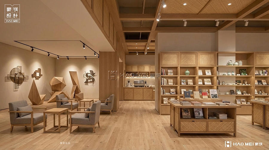 澜屿书集作为豪镁设计的创新实践,突破了传统书店的商业定位,以“社区文化客厅”为核心理念,打造了一个融合阅读、社交、体验的复合型文化空间。项目选址于大型社区核心地带,旨在为居民提供触手可及的文化服务,构建社区文化生活的温暖据点。