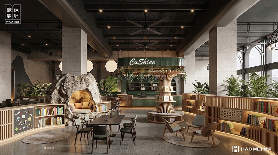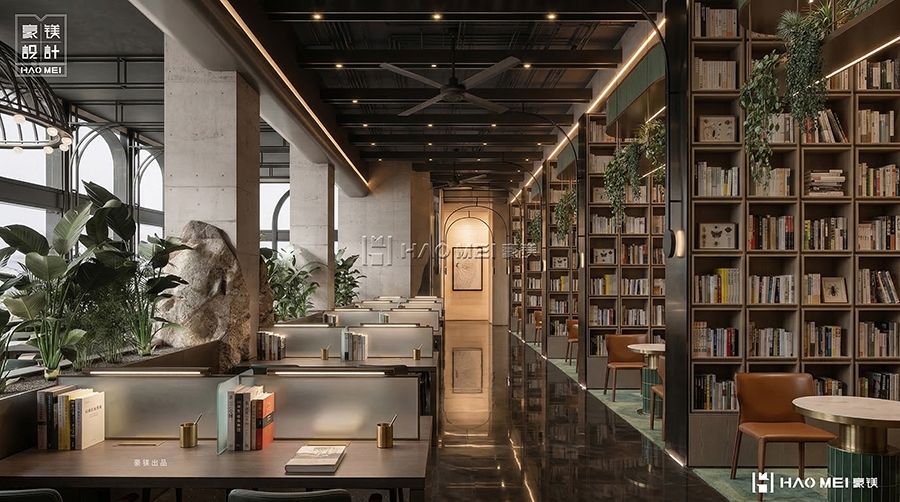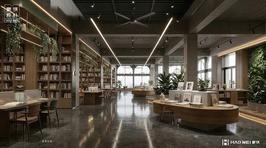 在这里,工业风的硬朗与木质的温暖共生,知识的厚重与自然的轻盈交融,商业的活力与人文的温度并存。未来,豪镁设计将继续以“空间为笔,文化为墨”,书写更多“让阅读回归生活,让空间承载精神”的作品。