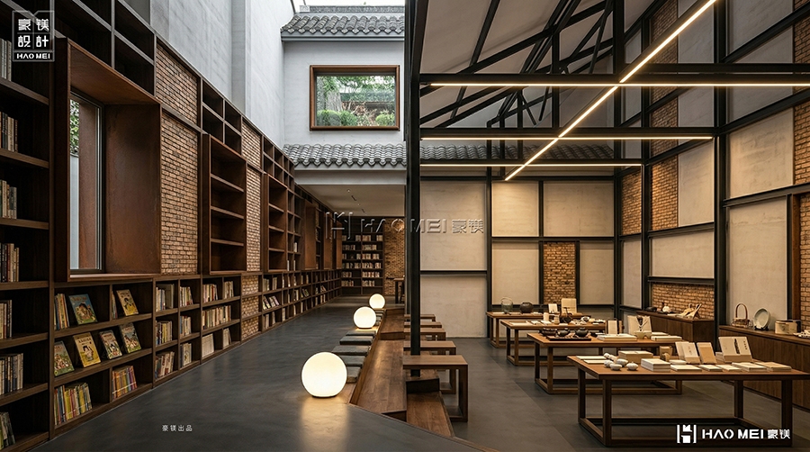 吾筑书局,是豪镁设计对当代文化空间的深度回应。我们不追求“大而全”,而追求“小而美、深而精”;不强调“卖货”,而强调“造境”。在这里,书是主角,但空间是舞台,读者是演员。我们相信,好的设计能唤醒人们对阅读的热爱,对文化的敬畏,对生活的诗意。