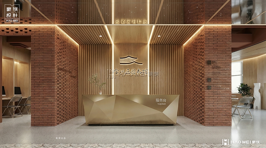 作为豪镁公司,我们始终以“文化空间的在地性表达”为核心设计理念,在金川区图书馆的设计中,从地域文化挖掘、功能场景创新、材料工艺赋能三大维度,打造兼具人文温度与现代活力的公共文化空间。以下从设计逻辑、空间叙事、细节落地三个层面,解析我们的设计实践。